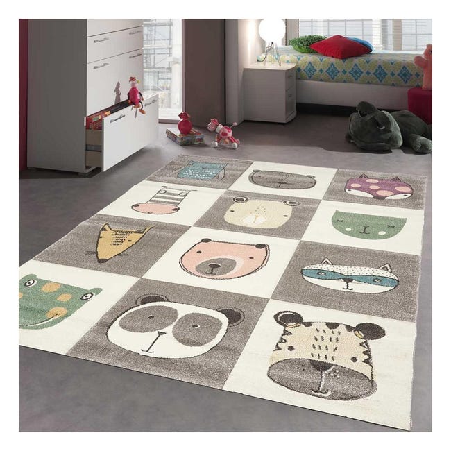 Tapis Enfant 160x230 Cm Rectangulaire Zoo Too Gris Chambre Adapte Au Chauffage Par Le Sol Leroy Merlin